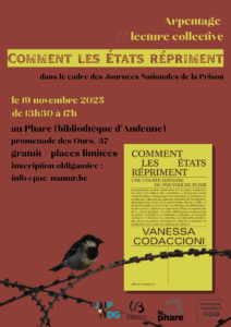 Cette année, avec PAC, nous avons voulu mettre le focus sur les limites et les alternatives à la justice pénale à travers l’arpentage (lecture collective) du livre Comment les États répriment: Une courte histoire du pouvoir de punir.