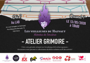 Dans le cadre du projet Les Veilleuses du Hainaut « Mémoire de Sorcières », nous vous invitons à un atelier unique : venez fabriquer votre propre Grimoire ! 📖✨