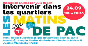 Le travail social dans certains quartiers s’effectue de manière transversale, en impliquant tant les associations que les communautés locales et les professionnel·les de ces services qui travaillent en première ligne, en contact direct avec les usager·ères. Qu’il s’agisse des CPAS ou des services sociaux de proximité (tels que l’Entr’aide des Marolles, active dans le centre de Bruxelles depuis plus d’un siècle), les institutions de travail social sont confrontées à un problème commun. Ce dernier s’articule autour de la distance grandissante entre les autorités publiques et certaines populations précarisées qui, depuis la crise sanitaire notamment, ont perdu confiance.