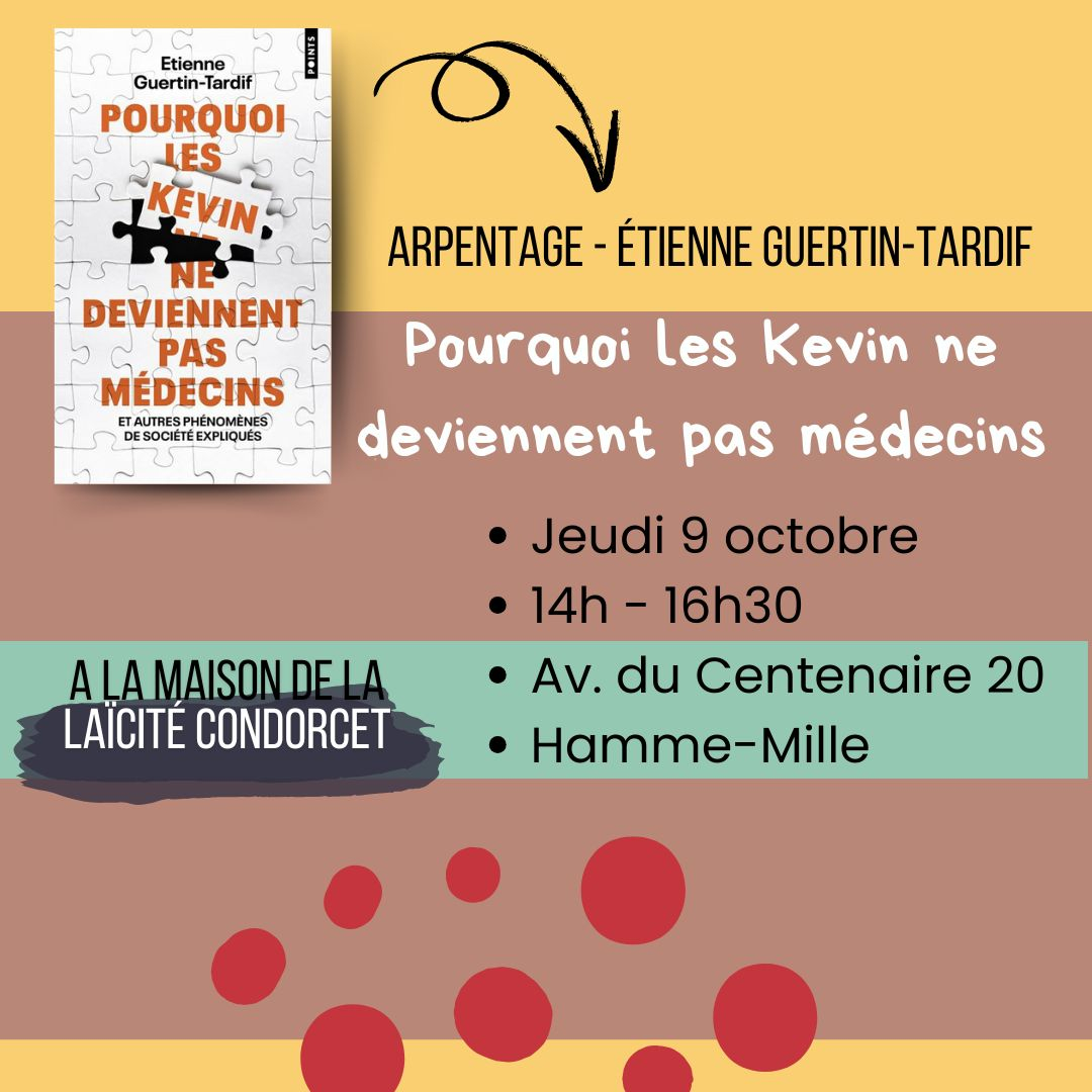 Lecture collective du livre Pourquoi les Kevin ne deviennent pas médecins (et autres phénomènes de société expliqués) d’Étienne Guertin-Tardif, selon la méthode de l’arpentage, en partenariat avec les Équipes populaires Brabant wallon.
