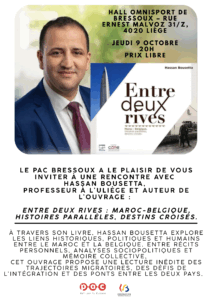 Le PACde Bressoux a le plaisir de vous inviter à une rencontre avec Hassan Bousetta, professeur à l’Université de Liège (ULiège) et auteur de l’ouvrage : « Entre deux rives : Maroc-Belgique, histoires parallèles, destins croisés« .