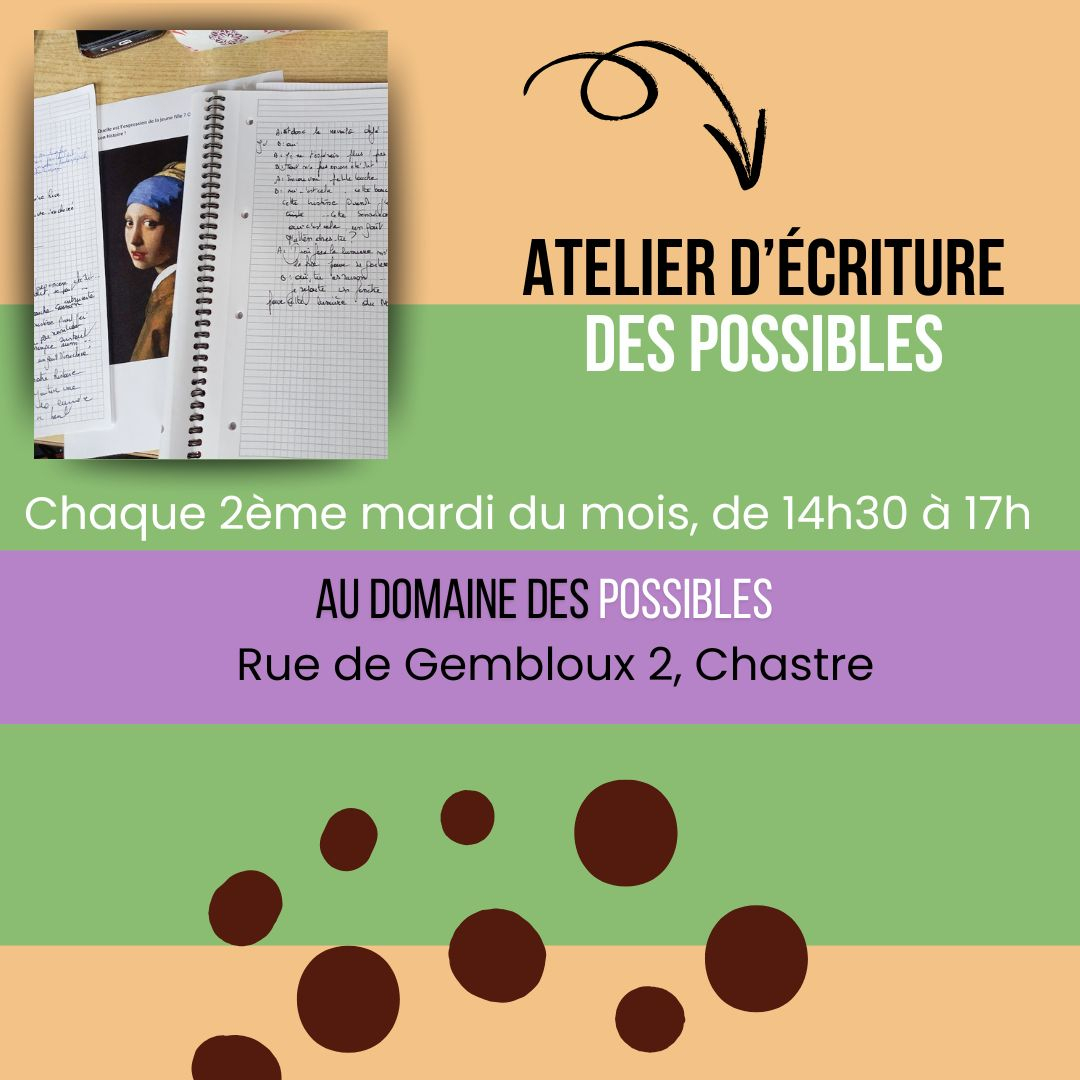 Donner rendez-vous à votre envie d’écrire ? C’est possible ! Nous serons là pour vous accueillir et vous inviter à mélanger les mots, à faire valser les phrases, à envoyer en l’air les textes ! Rendez-vous au Domaine des Possibles pour explorer vos imaginaires, horizons désirables et autres possibles à faire naître sous votre plume…