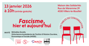 Pour mieux s’en défendre, il faut d’abord bien les repérer et analyser leur évolution, en étudiant notamment les processus de vise en place et les acteurs qui y contribuent. Historienne et présidente de l’Institut d’Histoire Ouvrière, Économique et Sociale (IHOES, www.ihoes.be), Micheline Zanatta présentera ce sujet dans différentes provinces. Elle éclairera des concepts clés (dont les distinctions entre extrême droite et fascisme), reviendra sur différents épisodes de l’histoire de l’antifascisme (en Belgique en particulier) et ouvrira le débat afin que le passé enrichisse nos échanges et nos réflexions actuelles.