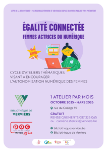A partir d’octobre, et jusqu’à mars 2026, l‘EPN de Verviers, la régionale PAC Verviers et son réseau d’écrivain.es public.ques proposent des ateliers thématiques et de réflexion autour de la question de la fracture numérique.
