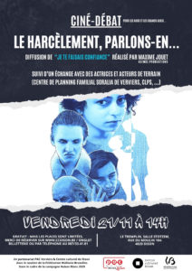 Ce court métrage percutant aborde avec justesse le thème du harcèlement chez les jeunes et ses conséquences souvent invisibles mais profondes. À travers une mise en scène sensible, Maxime Jouet nous invite à réfléchir sur la confiance, la trahison et la reconstruction. La projection sera suivie d’un échange autour des mécanismes du harcèlement et des moyens d’y faire face. En présence d’acteurs de terrain locaux actifs dans la prévention du harcèlement (Planning familial SORALIA, CLPS,…)