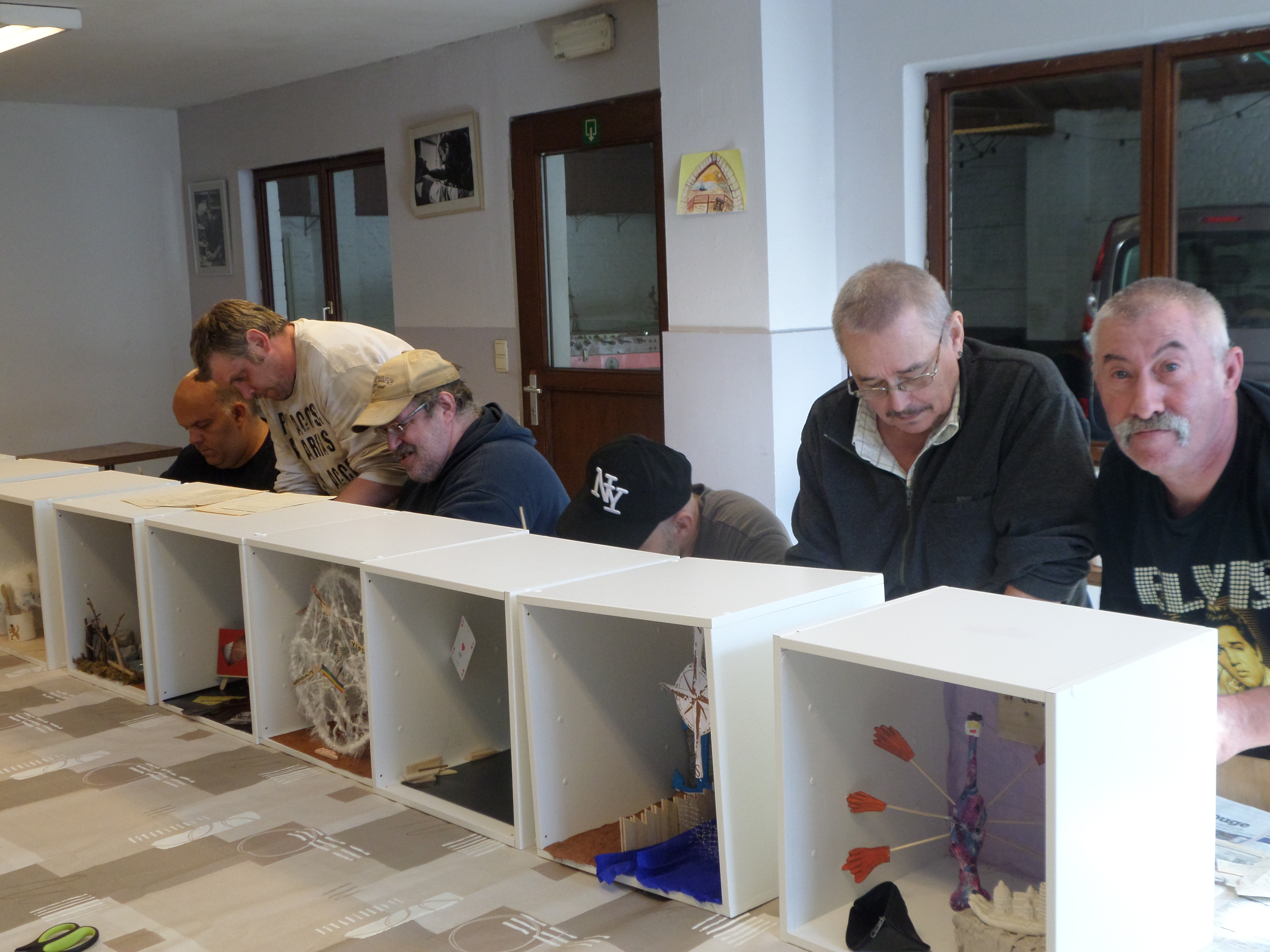 Le 16 mai 2019, Georges, Jean-Christophe, Jean-Luc, Jérôme, Marc, Olivier, André et Michel ont présenté en avant-première une maquette géante d’un immeuble réalisé lors d’un atelier d’art plastique réalisé avec le groupe.